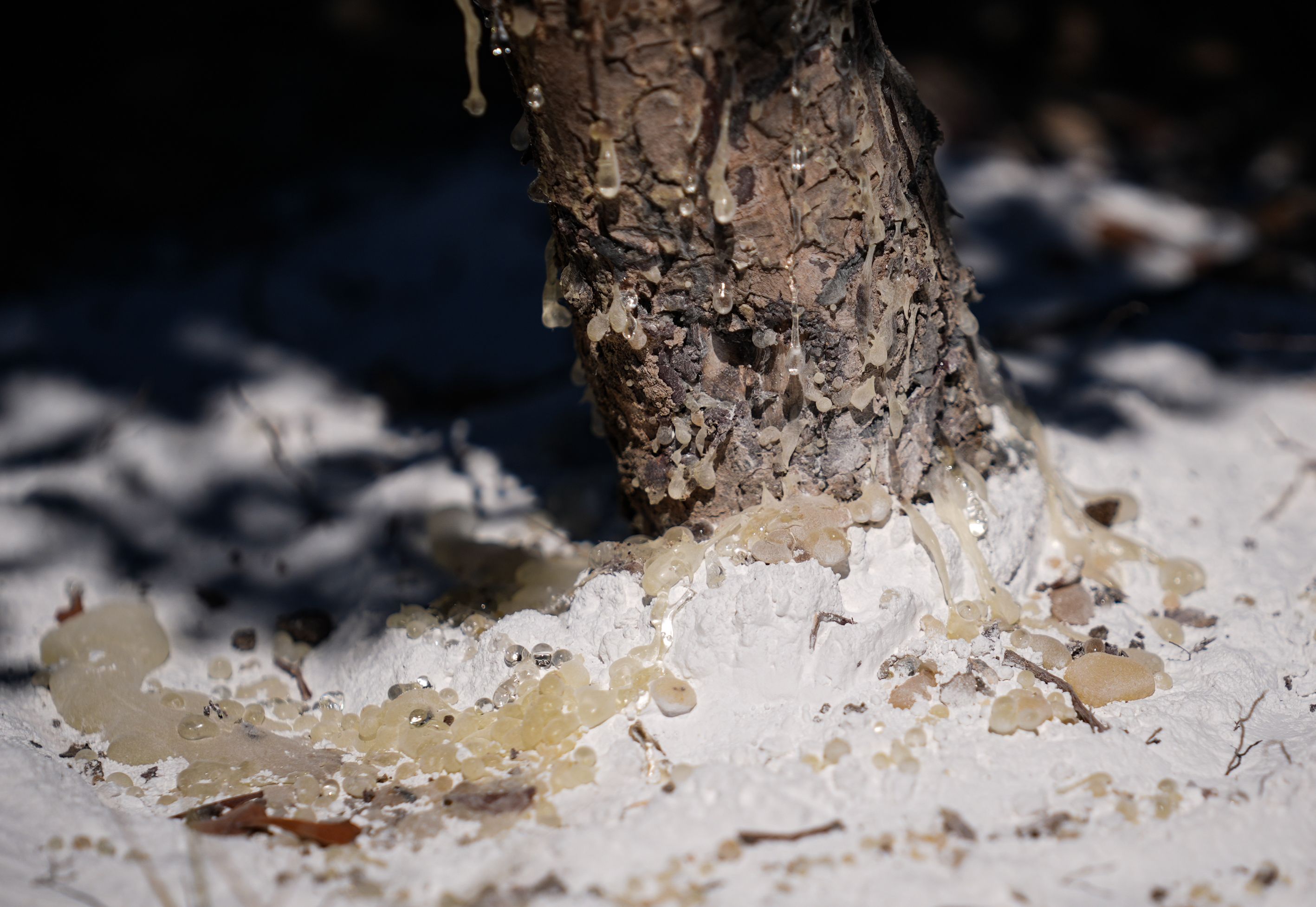 Ağaçtaki damla sakızı, çeşitli işlemlerle hasat ediliyor.